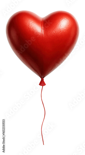 A vibrant red heart-shaped balloon with a string attached, symbolizing love and celebration on transparent background.