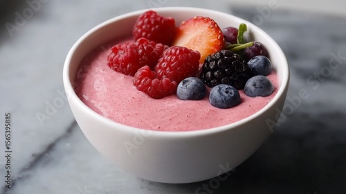 A vibrant smoothie bowl topped with superfoods, symbolizing sustainable and nutritious eating,