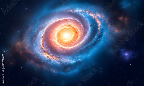 A vibrant spiral galaxy with orange and purple hues, suitable for space-themed designs, astronomy publications, or science-related projects