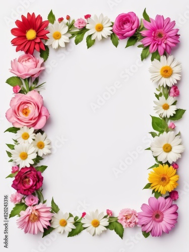 A vibrant square frame composed entirely of colorful flowers. Perfect for framing photographs, invitations, greetings cards or any other creative project.