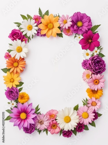 A vibrant square frame composed entirely of colorful flowers. Perfect for framing photographs, invitations, greetings cards or any other creative project.