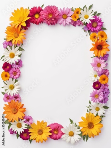 A vibrant square frame composed entirely of colorful flowers. Perfect for framing photographs, invitations, greetings cards or any other creative project.