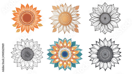 A vibrant sunflower in a mandala-style design, combining nature's beauty with intricate geometric patterns.