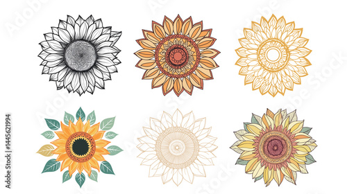 A vibrant sunflower in a mandala-style design, combining nature's beauty with intricate geometric patterns.