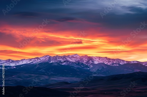 A vibrant sunrise casting warm hues over rugged mountains, symbolizing new beginnings