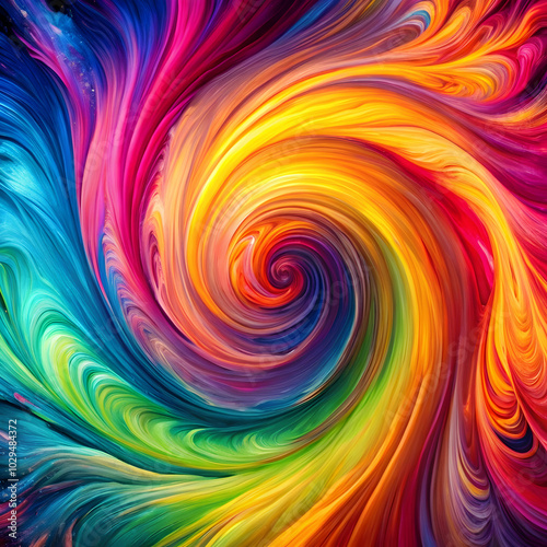 A vibrant swirling acrylic paint texture showcases bright neon colors,