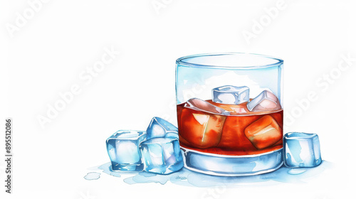 A vibrant watercolor illustration depicts a classic glass of whiskey on the rocks, celebrating the essence of fine spirits.