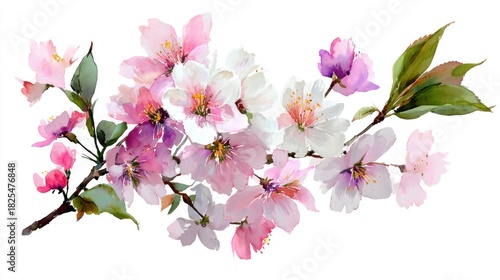 A vibrant watercolor illustration of pink and white cherry blossoms on a branch, symbolizing beauty and renewal.