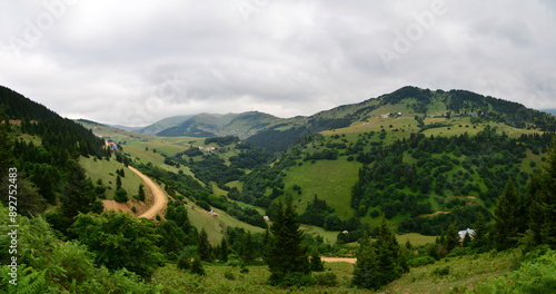 landscape, mountain, nature, mountain, sky, forest, summer, view, green, vale, travel, hill, cloud, tree, grass, hill, cloud, tree, panorama, countryside, tour tourism, village, meadow, beautiful