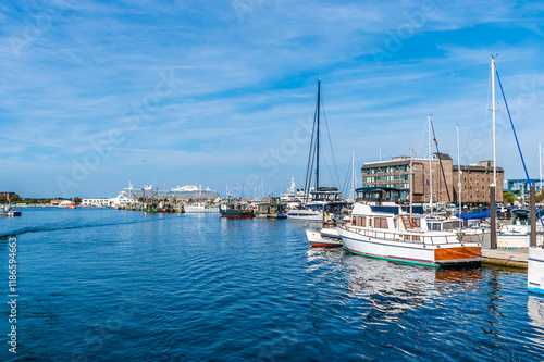 A view from the harbor towards Narragansett bay at Newport, USA in the fall