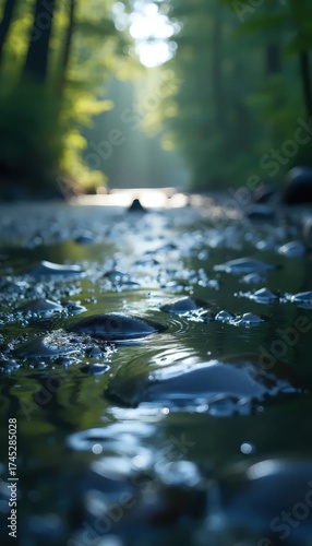 A view of a stream in the middle of a forest.