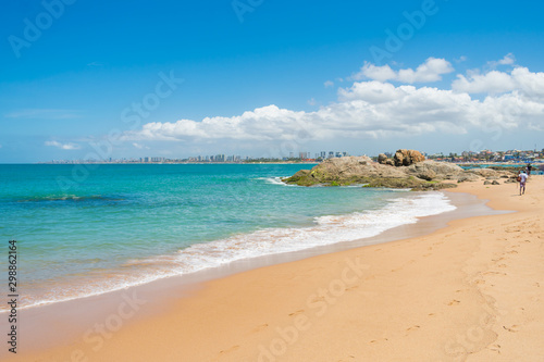 A view of Farol de Itapua beach - calm waters and beautiful turquoise sea - Salvador, Bahia (Brazil)