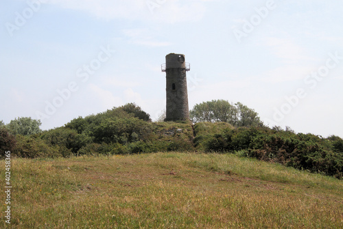 lighthouse, sky, tower, coast, architecture, light, building, beacon, sea, blue, landscape, white, landmark, beach, nature, water, green, grass, castle, cloud, red, stone, house, old, warning