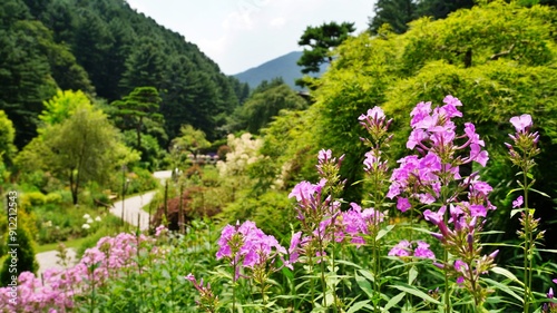 A view of the Morning Calm Arboretum in the middle of summer Park, flowers, wild flowers, travel, summer, vacation,