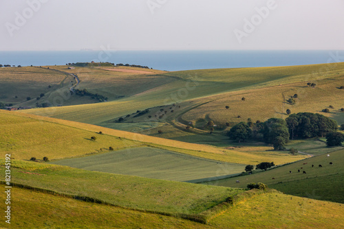 view, outdoors, nature, sussex, landscape, field, idylli, calmness, scenic, no people, day, britain, europa, countryside, england, pretty, horizontal, farmland, blue skies, sea, agriculture, travel, scenery, national park, rural scene, hill, undulating, geography, rural, horizon, light, sunshine, coast, clear sky, green, cattle