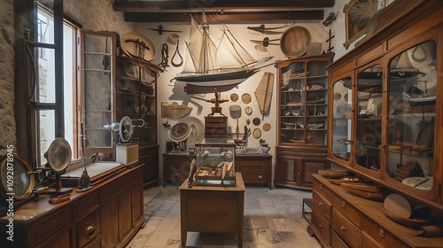 museum, artifact, nautical, instrument, display, vintage, maritime, wooden, cabinet, sailing, history, collection, craftsmanship, decor, glasses, shelf, tool, rope, model, boat, navigation, marin, design, exhibit, culture, heritage