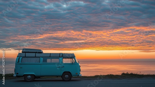 vintage, parked, coastal, highway, sunset, background, car, vehicle, truck, auto, transportation, van, transport, automobile, vector, isolated, suv, toy, bus, retro, drive, travel, model, road, wheel, illustration, old, small, minivan