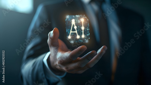 A Vision of Growth: Businessman Holding an AI Hologram as a Symbol of Advanced Technology Solutions