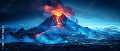 volcanic, eruption, lava, smoke, ash, dramatic, sky, natural, disaster, magma, explosive, geology, activity, plume, erupting, mountain, landscape, danger, power, force, catastrophic, fiery, cloud, molten, earth, explosion, atmospheric, geologic, phenomena, seismic, debris, hazard, dangerous