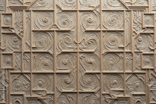 a wall with a pattern of wood and metal