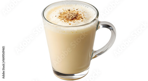 latte, beverage, drink, punch, cocktail, refreshment, liquid, cappuccino, chai, milkshake, toddy, grog, milk, cream, egg, spice, nutmeg, cinnamon, garnish, topping, foam, froth, bubble, dairy, sweet, creamy, rich, mug, cup, glasses, glassware, stein, vessel, container, handle, transparent, clear, white, beige, brown, off-white, light, pale, warm, hot, winter, holiday