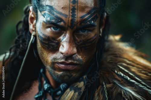warrior, dancer, ritual, performance, tradition, feather, tattoo, forest, strength, heritage, attire, nature, art, spirituality, costume, face paint, cultural, expression, movement, historical, tribal, mystique, rythm, connection, ceremony, dance, landscape, emotional, male, character, symbolism, native, choreography, bequest, breathtaking, vibrant, indigenous, storytelling, ancestral, grace, beauty, fierce, powerful, energy, gathering, community, pride
