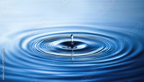A water droplet falling into the ocean, creating ripples on its blue surface.