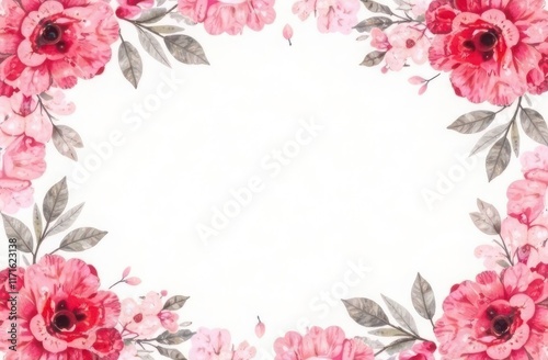 A watercolor floral border in pink and red hues. Space for a personalized message in the center.