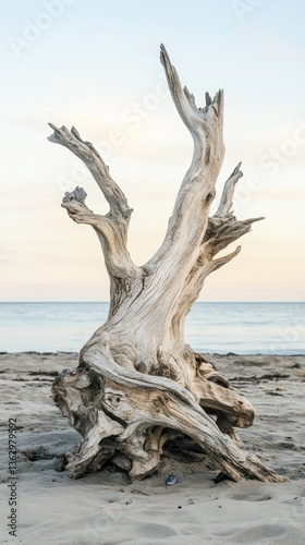 wood, driftwood, beach, sand, ocean, sky, weathered, texture, natural, branch, shore, landscape, coastal, sea, grain, light, calm, serene, quiet, horizon, detail, rough, sculpture, gnarled, pattern, erosion, beige, neutral, minimalist, abstract, isolated, upright, surface, line, streak, colours, outdoors, environment, nature, waterscape, beauty, tranquil, aged, smooth, organic, pale
