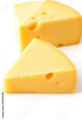 A wedge of cheddar cheese, creamy texture, sharp edges, isolated on white, culinary, tasty, appetizer