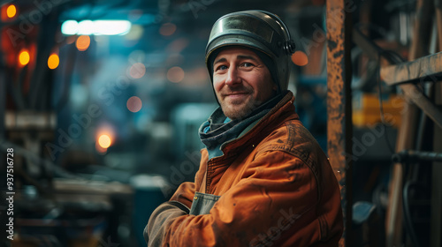 welder, protective, gear, welding, torch, standing, workshop, smiling, safety, equipment, industrial, metalwork, spark, helmet, glove, shield, fabrication, craftsmanship, arc, flames, skilful, precision, construction, heat, tool, labor, expertise, manufacturing, assembly, workbench, steady, metal, machinery, technical, iron, steel, craft, job, production, facility, industry, professional