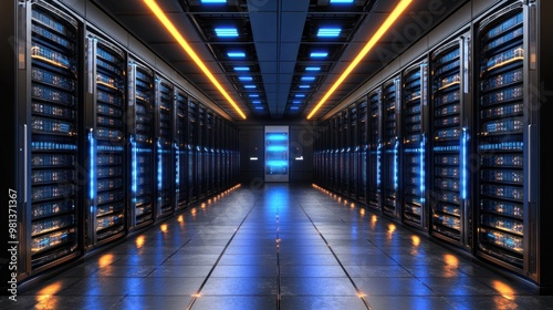 datum, center, server, room, technology, illuminated, server, corridor, blue, light, orange, modern, infrastructure, rack, digital, equipment, environment, storage, network, hardware, virtualization, computing, information, electricity, cyber, system, advanced, organisation, management, connectivity, communication, industry, innovation, space, age, computer, network, electronic, design, sleek, architecture, security, cloud, backup, retrieval, processing, maintenance, operation, efficiency