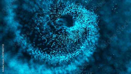 A whirlwind of luminous particles. Blast futuristic wave. Digital background. 3D rendering.