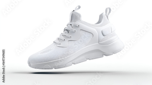 shoe, white, athletic, footwear, sport, lace, sneaker, fashion, style, modern, trendy, sole, run, walk, casual attire, training, exercise, gym, gear, equipment, product, design, apparel, clothing, floating, shadow, ground, light, monochrome, rendering, texture, textile, fabric, synthetic, comfortable, lightweight, support, mobility, performance, innovation, dynamic