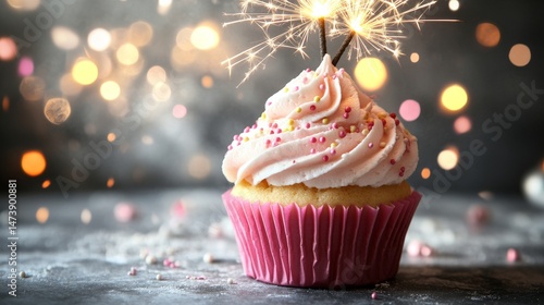 cupcake, pink, frosting, yellow, top, white, background, sparkler, sweet, birthday, baking, cake, party, food, dessert, celebrate, candle, tasty, nobody, delicious, cream, horizontal, space, 1, gift, light, eat, happy, blue, home, treat, table, homemade, pastry, wooden, holiday, festive, decorated, copy, birthday party, sprinkle, snack, burning, colourful, icing, birthday cake