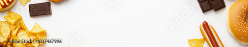 A white background with fast food items on the left and right sides, leaving space in between for text or graphics.