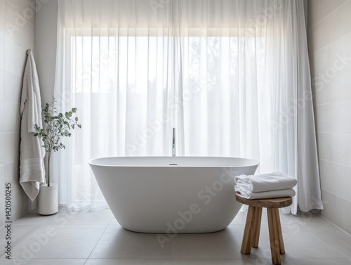 white, bathtub, bathroom, wooden, stool, towel, large, unique, shape, room, luxury, making, interior, tub, modern, design, home, clean, bathe, house, nobody, faucet, apartment, style, floor, architecture, empty, render, elegance, indoor, contemporary, new, window, decor, illustration, light, inside, sink, three-dimensional, wall, estate, domestic, ceramic, space, hotel, tile, mirror, beautiful, hygiene