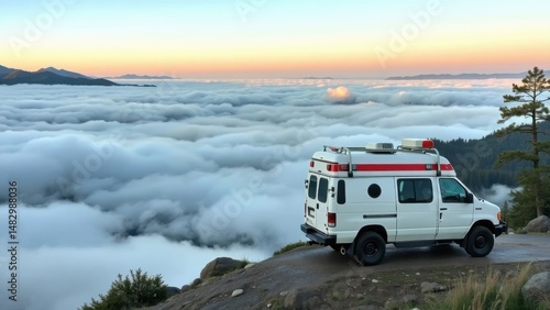 camper, van, cloud, mountain, sunrise, serenity, solitude, calmness, get-away, mobility, escape, remote, exploration, inspiration, mist, wilderness, peaceful, vehicle, relaxation, panorama, journey, trek, breathtaking, pine, scenic, expedition, elevation, hilltop, camping, altitude, lifestyle, outdoors, sky, vacation, wanderlust, road, nature, adventure, travel, landscape, tour tourism, view, forest