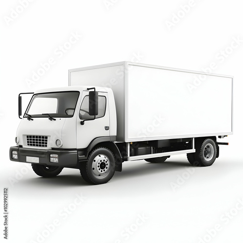 truck, delivery, white, background, isolated, vehicle, commercial, transportation, cargo, box, body, wheel, tire, bumper, grille, front, side, view, blank, empty, design, template, logistic, shipping, freight, automotive, industrial, heavy, duty, commercial vehicle, delivery truck, van, road, street, city, highway, drive, travel, parking