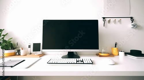 computer, monitor, keyboard, desktop, screen, office, desk, display, work, equipment, workplace, workstation, table