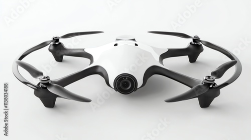 A white drone with black propellers and a camera.
