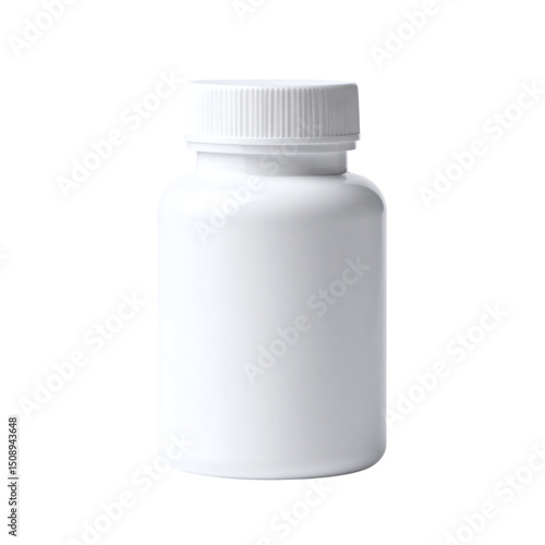 A white plastic bottle with a ribbed cap, typically used for storing supplements or medications