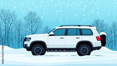 A white SUV parked in a snowy landscape, showcasing winter's beauty and the functionality of off-road vehicles.