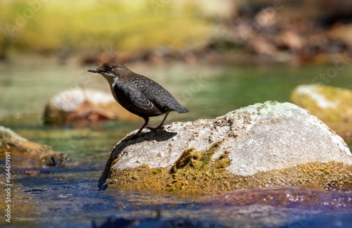 A white throated dipper. Cinclus cinclus.