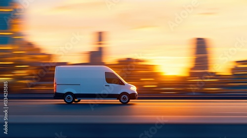 van, sunset, city, motion, speed, connectivity, rush, logistic, efficiency, infrastructure, movement, twilight, innovation, delivery, skyline, traffic, commerce, vehicle, journey, dusk, horizon, silhouette, service, blur, scenery, transport, cargo, express, commute, gloaming, industry, business, urbanisation, modern, urban, orange, design, yellow, road, adventure, environment, travel, landscape