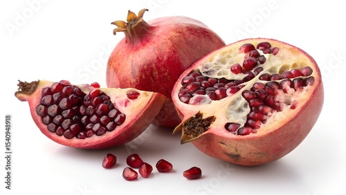 pomegranate, fruit, red, seed, juicy, ripe, food, healthy, vitamin, nourishment, dessert, cookery, ingredient, fresh, organic, natural, delicious, sweet, tart, antioxidant, cut, half, isolated, white, background, photo, still life, closeup, vibrant, colours, texture, glossy, shiny, bright, eating, diet, wellness, granada, epicure, vegetable, produce, market, harvest, autumn