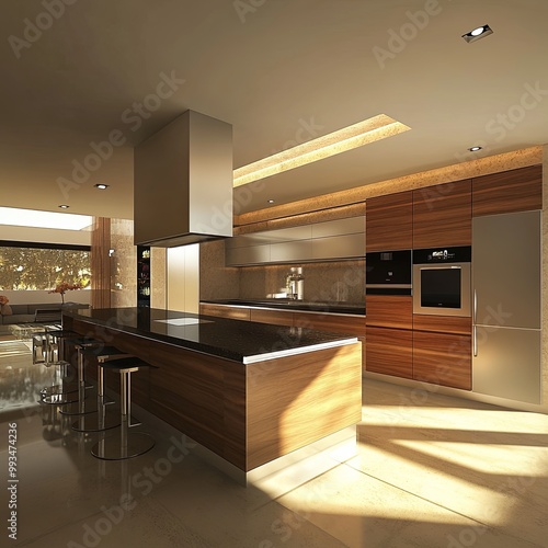 A wide angle view of contemporary modern kitchen idea design