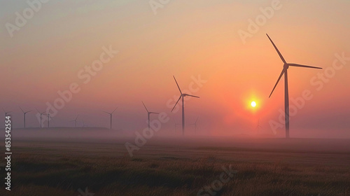 A wind turbine farm during sunrise. Wind Turbine