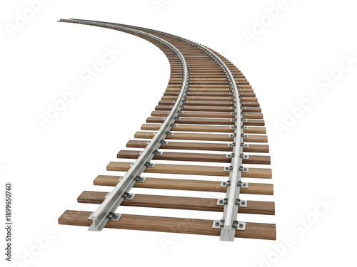 A winding railway track disappearing into the distance on a clear day isolated on transparent background
