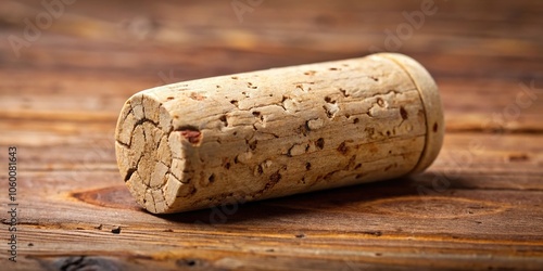 A wine cork with a wooden texture and slight wear around the edges, bottle stopper, wine glasses, vintage